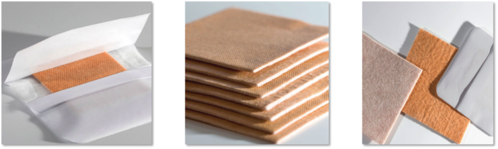 Και τα δύο στρώματα είναι εμποτισμένα με οξείδια χαλκού, ενώ τα επιθέματα διατίθενται με ή χωρίς κολλητική ταινία, ανάλογα με την κλινική ανάγκη.