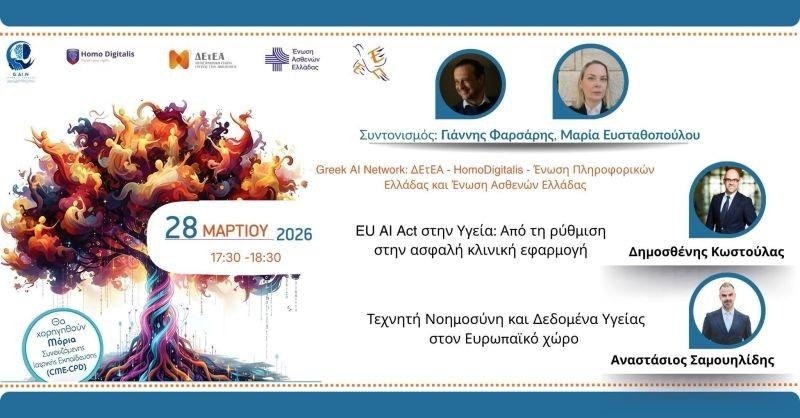 - Στη διαμόρφωση εθνικής στρατηγικής για την τεχνητή νοημοσύνη στην ιατρική, με τη συμμετοχή θεσμικών εκπροσώπων από Ελλάδα και Κύπρο