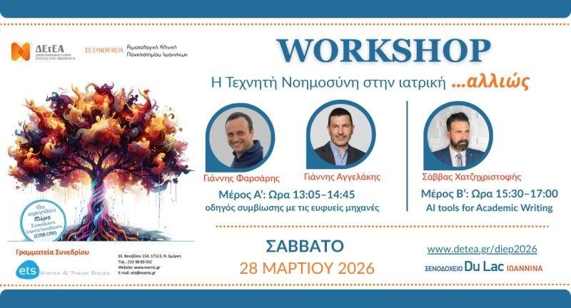 - Σε εκπαιδευτικά workshops για ιατρούς, με αντικείμενο τα εργαλεία ΤΝ και την ακαδημαϊκή χρήση τους