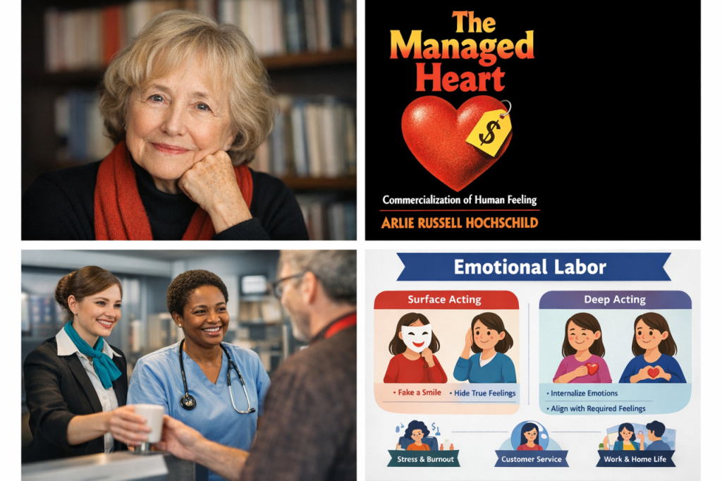 Η Hochschild εισήγαγε τον όρο αυτό στη σημαντική της μελέτη The Managed Heart: Commercialization of Human Feeling (1983), όπου καταδεικνύει πώς οι εργαζόμενοι σε υπηρεσίες, όπως οι αεροσυνοδοί, καλούνται να διατηρούν ένα «φιλικό» και «καλό» πρόσωπο ανεξάρτητα από το πώς αισθάνονται πραγματικά.